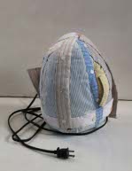 ![]() Taking a cue from Duchamp's LHOOQ, a.k.a. "Mona Lisa with moustache", some of my objects refer to more recent art historical icons such as Man Ray's Gift (Cadeau) and Manet's Picnic in the Grass. My Gift is an updated version of the Man Ray. Perhaps its humor is blacker, in that its danger is greater. I've encased an electric iron in a seemingly cuddly bundle whose fabric consists of the found material of men's shirts including collars and front buttons. The pale pastel tonality and rounded, soft shape ironically belie the fact that the iron's plug stands ready to be inserted in a wall outlet at which time the object can begin to sizzle and smoke. In the process of its self-destruction the gallery and or museum/exhibition space in which it's placed would be under attack along with the many systems that support artificial definitions of art as a pretty, decorative commodity. A picnic hamper and its contents: plates,cups, utensils, wine glasses etc. are bound and tied in torn sheeting in such a way that the interior is inaccessible, its food unattainable and satisfaction unavailable. This object makes fun of the cliched parodies of Manet's excellent painting along with the cultural norm and market place's encouragement of instant gradification. Three gifts carries its metaphor further by referring to the religious establishment's myth of wise, generous, kings bestowing gifts on a child of special potential: a myth that helped systematize and make brittle some of man's best feelings. Their gifts and finding of the child are both suspect because of the hypocrisy, wars and cruelity that accured over the centuries following their discovery. Three Gifts is also something of a shell game: only one of the two short "packages" contains an iron and the tall one encases a lamp. (The light of the world smothered? The lamp of Diogenes,the world's first well known Dadaist, who was thwarted in his continuing search for an honest man?) These are pretty packages containing dire messages. All authority and its hidden harmful agendas should be constantly challenged. Kitchen Bundle is seated on a familiar, seemingly comfortable chair in a style that reminds us of another era perhaps grandma's kitchen? It is the size of a bag of groceries or a toddler, either of which might be placed there as a temporary condition before the pleasurable activity to follow. Although the implied setting is congenial the bundle itself is somewhat sinister and mysterious. We are given no clue as to its contents. What venom lies within? Assemblage's humor resides in being absolutely literal. Unlike Robert Rauschenberg, Max Ernst and other earlier practitioners (of what has become an official art genre) who used disparate objects and images as parts of a unified artistic statement I attempt to parody the genre itself. Here the component parts of the assembling process: the clamps, rough unfinished pieces of wood and glue are themselves the sculpture. Space and volume and the variable juxtapositions of materials such as wood and metal partake of traditional sculptural values. But they deliberately lack the propriety of traditional sculpture. Assemblage is an impolite but truthful presence...someone who crashed the party. |